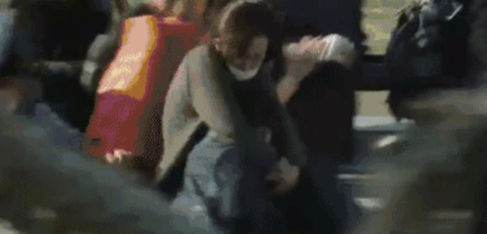 为了"逃"他们可以不顾一切,甚至是脚下有人也可以假装看不见。