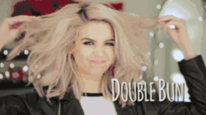 Step 1:先分成两份,将头发梳成两个马尾辫;