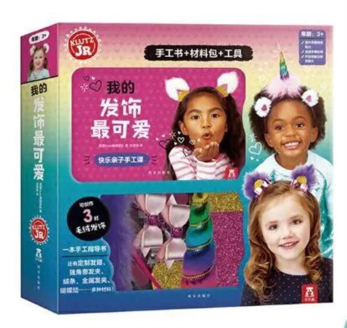 一本手工指导书,还有定制发箍独角兽发夹、绒条、金属发夹、蝴蝶结……多种材料