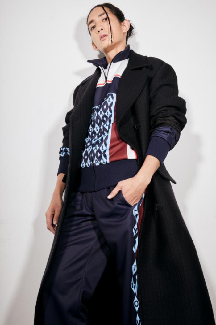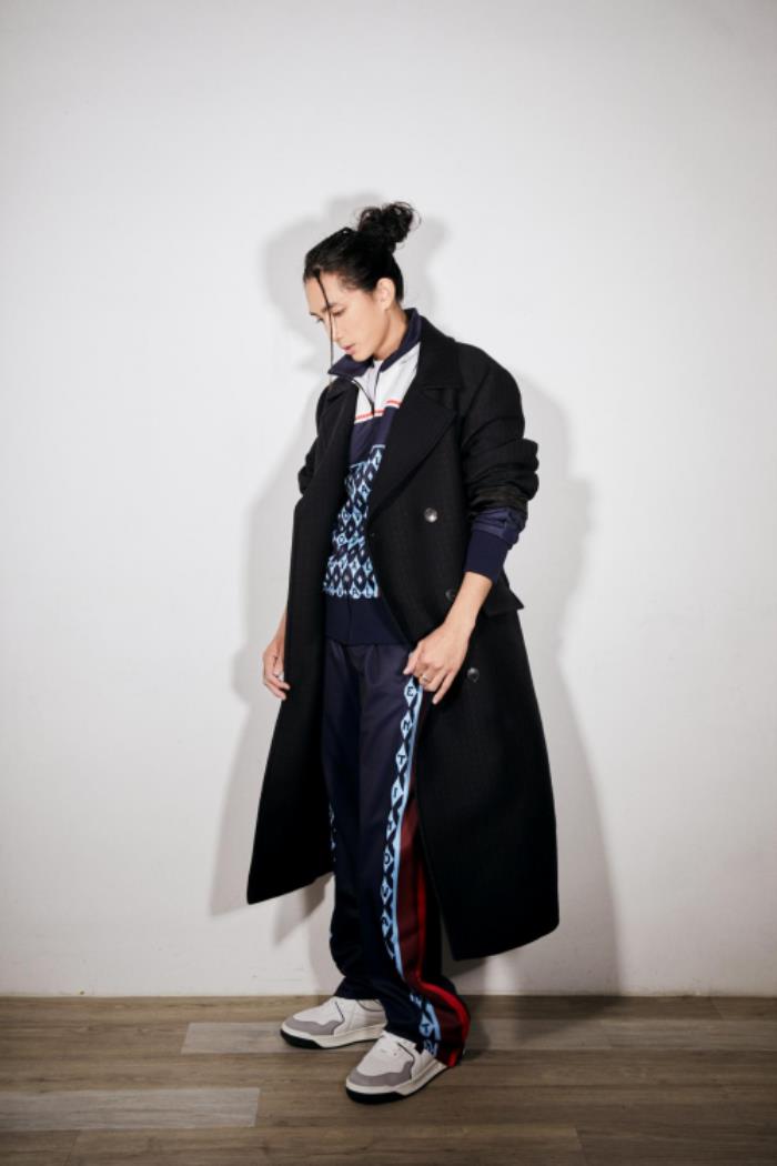 Lokman一身Fall 21 collection黑色长外套十分有型,内搭几何图案的休闲服,脚踩One Stud白色运动鞋,黑与白的比例,让整体造型很有层次感。版型立体的外套则让整体LOOK颇为飒爽随性,而且还带有一丝艺术家的不拘一格气息。