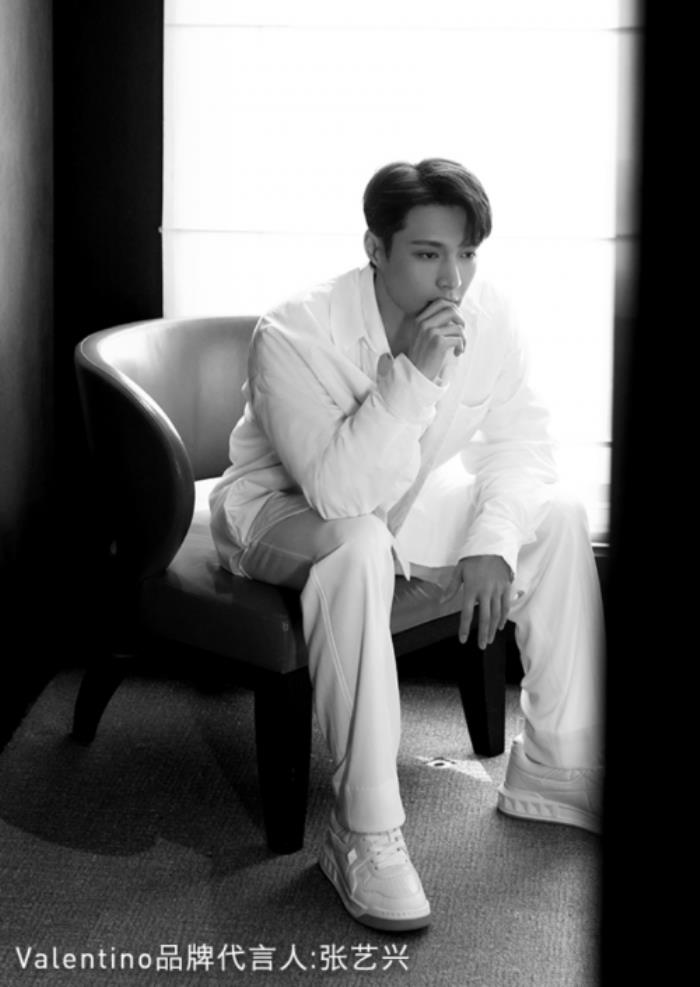 追溯时装历史,白色是代表贵族的色彩,纯白造型向来十分考验穿着者的时尚驾驭能力。Valentino品牌代言人张艺兴用一身白色套装,完美展现出了Valentino的优雅,其时尚表现力毋庸置疑。脚上的One Stud白色运动鞋则为整体LOOK增添了轻松慵懒,洒脱中带着一丝随性,是白马王子无疑了。