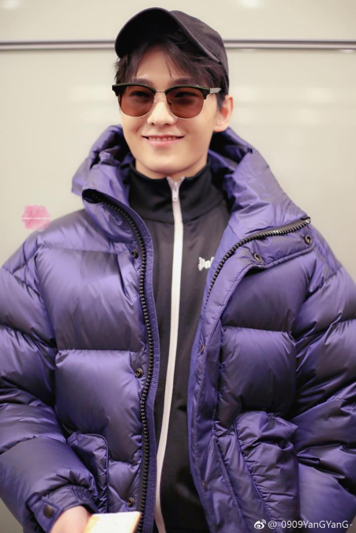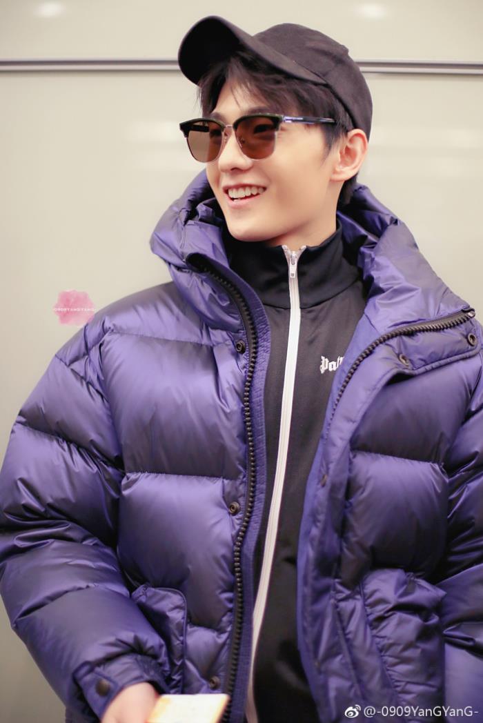 2月1日晚上20点44分,有网友在微博晒出一组杨洋现身上海虹桥国际机场的照片。照片中,杨洋戴着墨镜,身穿紫色羽绒服内搭黑色运动衣,皮肤白皙,笑容灿烂,帅气十足。
