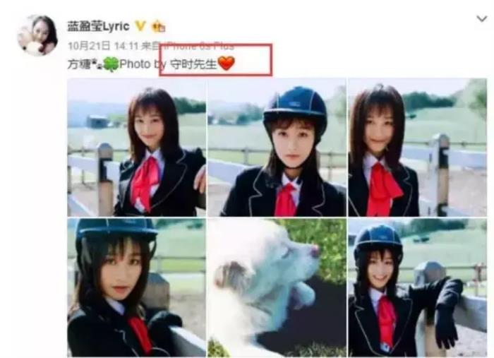 而蓝盈莹也默契地把拍摄者标注为对应的“守时先生”。