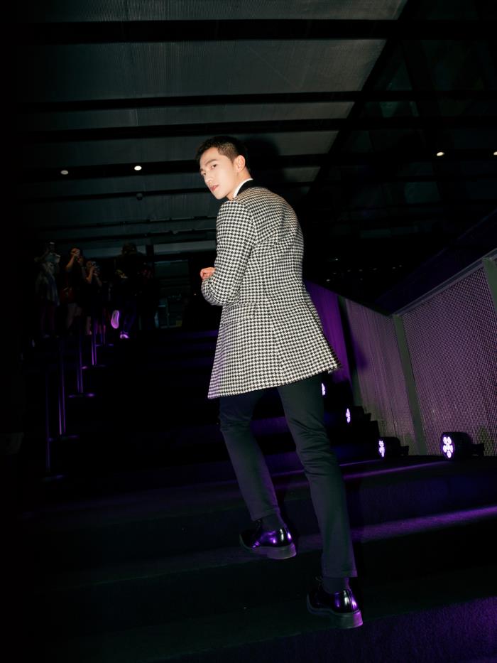 朱正廷在里面搭配了一件纯黑色的T恤,和西装搭配在一起,削弱了西装带来的呆板沉闷感,多了一份潮酷休闲的气息,穿出了别样的风格味道。当然,在颜色选择上也是和黑色格纹西装相呼应的,让整个造型看起来更加的协调丰满,更加能够衬托出朱正廷的人间绝色。