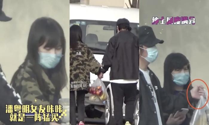 还有一次,媒体拍到尹姝贻去剧组探班潘粤明,潘粤明下班之后,两人还一起到房车里小聚了一下。后来到过两个人一起牵手买水果的画面。