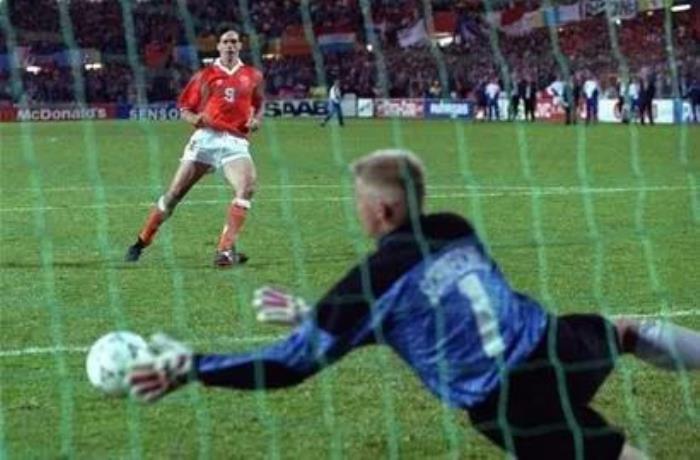 丹麦队曾在1992年欧洲杯中以替补球队的身份获得了冠军,上演了丹麦童话。当时因南斯拉夫内战,被取消了参赛资格,丹麦队替补上场。当时没有人认为他们能获得冠军,而他们最初的表现似乎也印证了人们的想法。小组赛前两场,他们0:0平英格兰,0:1负于东道主瑞典,眼看就要小组出局,就在最关键的第三场,他们出人意料的以2:1力克夺冠热门法国队,最终以小组第二的成绩惊险晋级淘汰赛。淘汰赛第一场他们遇到的是上届冠军~拥有三剑客的荷兰队,赛前,同样没有人认为他们能获胜,但奇迹却真的再次上演。常规时间,他们两度领先于荷兰队,而荷兰队则是极其艰难地扳平比分,最终比赛被拖入了残酷的点球大战。点球大战中,丹麦人弹无虚发,而荷兰队的范巴斯滕却发丢了点球,留下了终身遗憾。