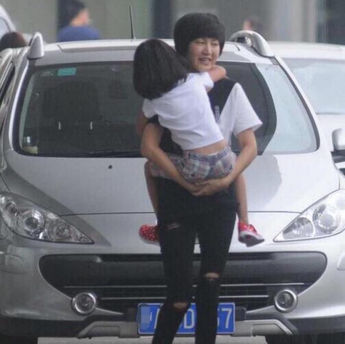 抱着自己的女儿,没想到还是被别人抓拍到了,而且她女儿的头发也是比较短,感觉了一直以来的造型都是没有发生太大的改变,并且这个时候她穿了一件白色的短袖,下面穿了一条破洞裤,选择的颜色是黑色的。