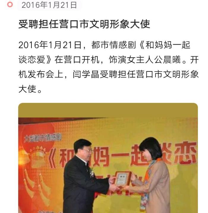 通过上网搜索《和妈妈一起谈恋爱》的相关信息得知,这部电视剧的确是在营口依云小镇拍摄的,而且闫学晶因此还担任了营口市的文明形象大使。