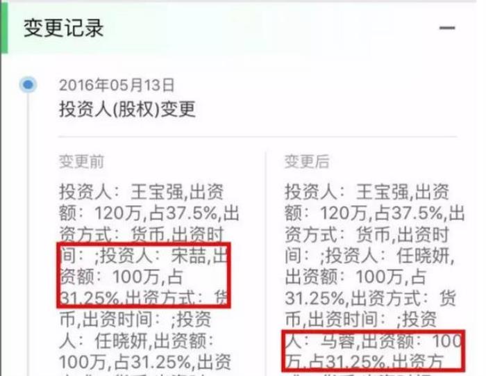 而由马蓉出资的乐开花影视,则在2015年变更为宝亿嵘的子公司,目前乐开花影视的股东是宝亿嵘影业和另一家企业。