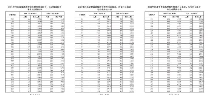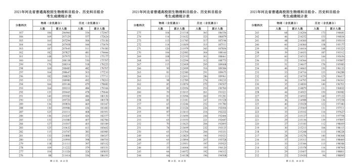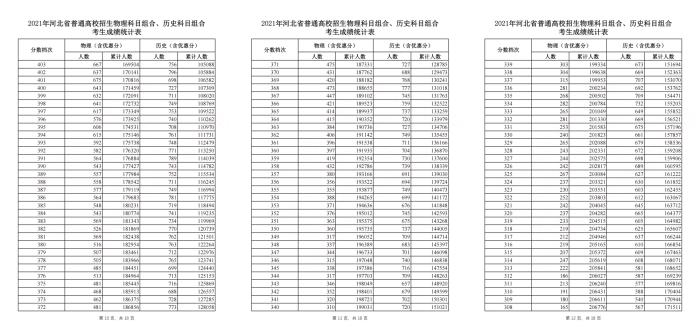 下面是河北省教育考试院公布的物理、历史组一分一段表: