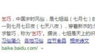 ——【七夕节的风俗】—— 在现代的近代七夕节里,大多数有情人都会将这天定义为情人节,从而进行颇有仪式感的相聚约会,而单身的人则会结伴取暖出行找乐子。总之就是一个闲不下来的日子,但是很多年轻人甚至是父母一辈的人都不太了解过去传统的民间风俗是如何庆祝七夕的,所以下面先小编就来给大家列举一下过去乞巧节的民间习俗有哪些吧。 香桥会;接露水;拜七姐;斗巧;乞求姻缘;游七姐水;种生求子;储七夕水;为牛庆生;七巧贡案;迎仙;拜神;拜牛郎;拜魁星;拜床母;染指甲;七夕观星;听悄悄话;净水视影;结红头绳;姑娘洗发;晒书晒衣;结扎巧姑;玩磨喝乐。