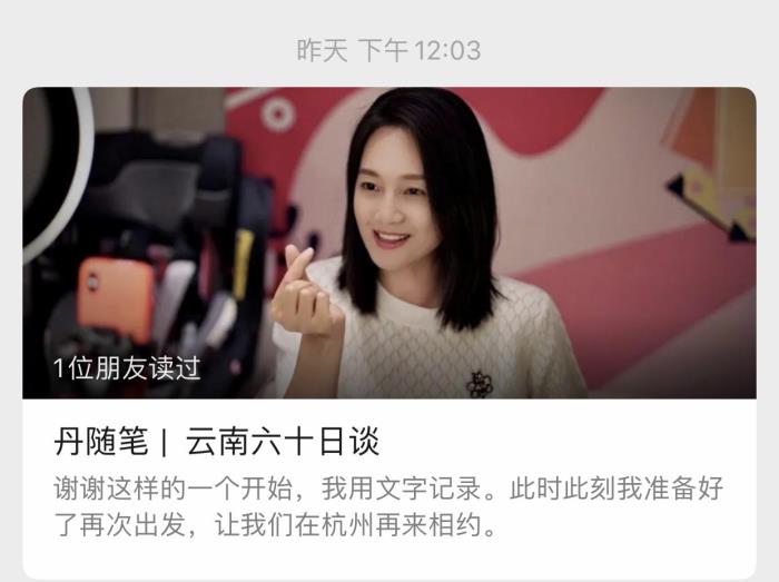 马上朱丹就要离开云南了,新的工作也会到来,她还是会继续做主持人工作,以后也会接戏,但会永远记得做主播带给她的快乐和成就感,也会继续把这份成就感延续下去。现在她的粉丝已经有30万了,等到50万时她还要举行见面会,对这些支持她的粉丝给予感谢。
