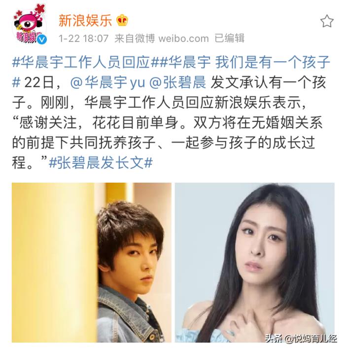华晨宇和张碧晨作为公众人物,其实这个榜样并不好,最后奉劝那些萌萌的小女孩子们,不到万不得已,不要选择非婚生子。