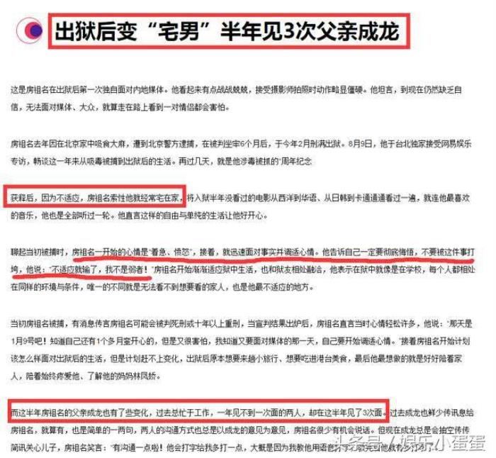 小编万万没想到,出狱后的房祖名变成 宅男 了 。并且半年见3次父亲成龙,可能是出狱后因为不太适应外面的世界,就宅在家里了,并且房祖名聊起当初被捕的时候,内心是着急,愤怒,但是房祖名就迅速对事实并调适心情,而且告诉自己一定要彻底悔悟,不要被这件事打垮, 还说 不适应就输了,我不是弱者! 可以看的出房祖名也是一个不服输的心态!