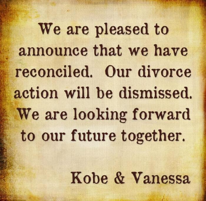 2011年12月1日,忍无可忍的瓦妮莎向法院提交了离婚申请书,6天后,科比在上面签下自己的名字。