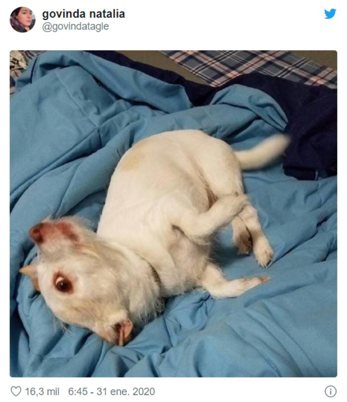 Un ojo abierto de par en par, unas pequeñas patas y un cuerpo recubierto de pelo recostado sobre varias mantas son los únicos elementos que protagonizan esta fotografía viral.