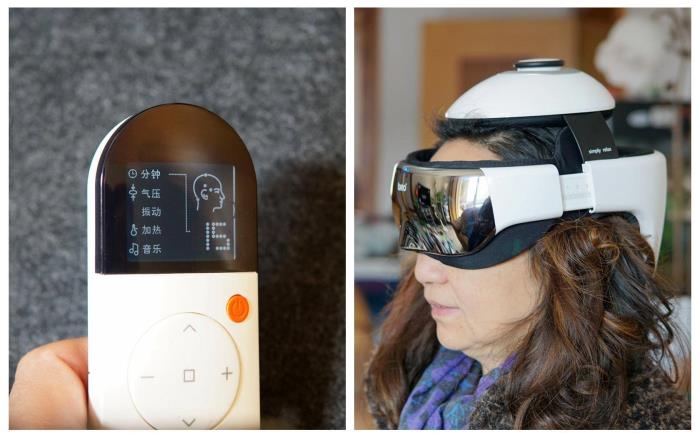 下图这款型号是idream3,大小和摩托车头盔差不多。包含了振动,气压,热敷等功效,除了头部以外,眼部按摩也一起囊括了。