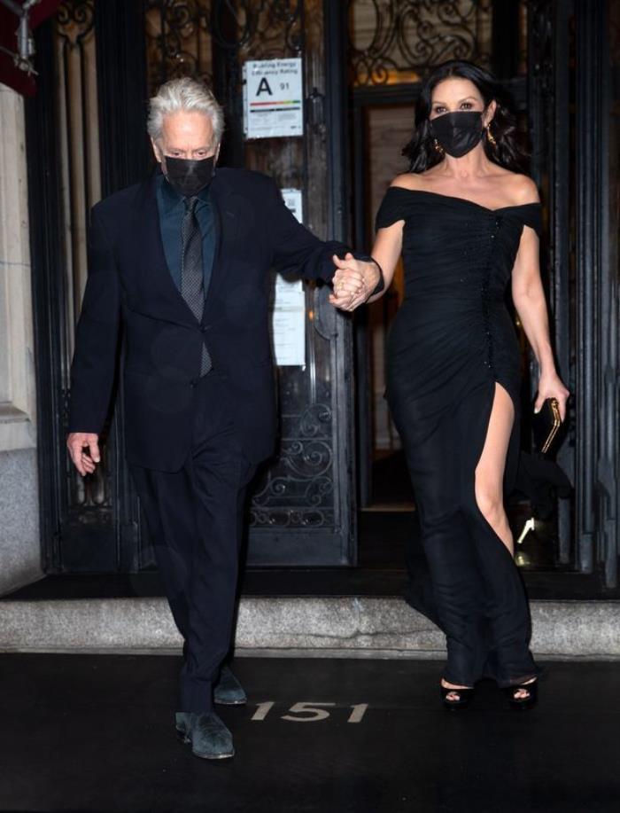泽塔-琼斯在拍《佐罗的面具》的同一年,与比她大25岁的道格拉斯相识,当然彼时对方已经是享誉全球的男星了。在交往9个月后,两人订婚,并于2000年11月在纽约举办了盛大的婚礼。之后夫妇两人一直甜蜜地生活在一起,而从两人携手走出酒店的画面看,女神真是很幸福。