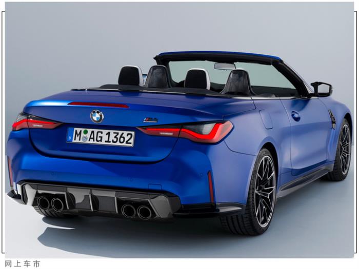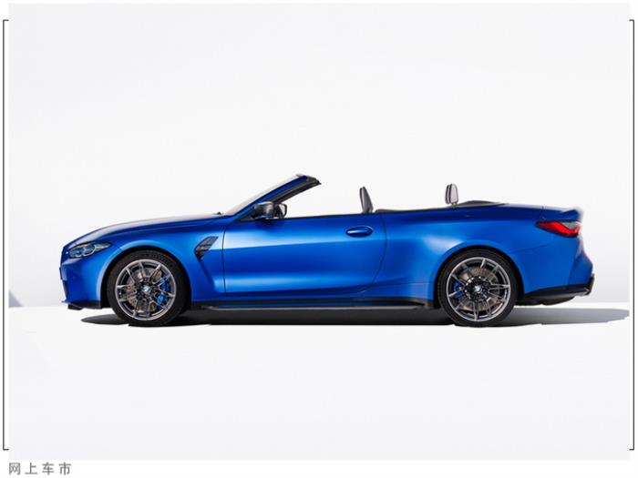 宝马全新M4软顶敞篷版前脸装配了大尺寸双肾进气格栅,两侧装配了品牌旗下激光大灯组。车身侧面配备了多辐式铝合金轮毂,车顶采用了软顶敞篷材质打造。车尾为双边双出式排气布局,尾门上方还加装了高位刹车灯组。此外,新车还提供了前部有六活塞卡钳和15英寸(380毫米)制动盘,后部有单活塞后卡钳和14.6英寸(370毫米)制动盘。此外,消费者还可以升级到可选的M Carbon陶瓷制动系统,该系统提供了金色涂装的卡钳以及前盘长15.7英寸(400毫米)和后盘长15英寸(380毫米)的制动盘。