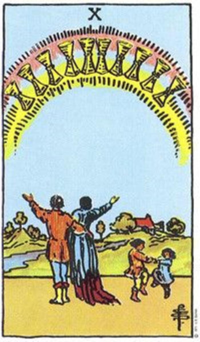你开的卡是“圣杯10”。家庭是你重新起航的关键。你需要理清家庭关系,让其成员之间的关系更加融洽,让后方稳定温暖,这样你才能得到精神上的支持,一味地奔跑和奋斗,忽略了“家”的存在,不利于你事业的推进。如果你恰好是单身,意味着此时此刻要考虑个人感受,先成家后立业,触发人生新阶段。