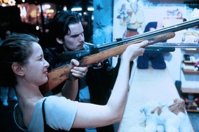巴黎姑娘朱丽·德尔比要比霍克大一岁,1985年演了人生第一部电影——让-吕克·戈达尔的《侦探》,1993年主演了《红白蓝》三部曲中的《白色》,是一颗冉冉升起的新星。