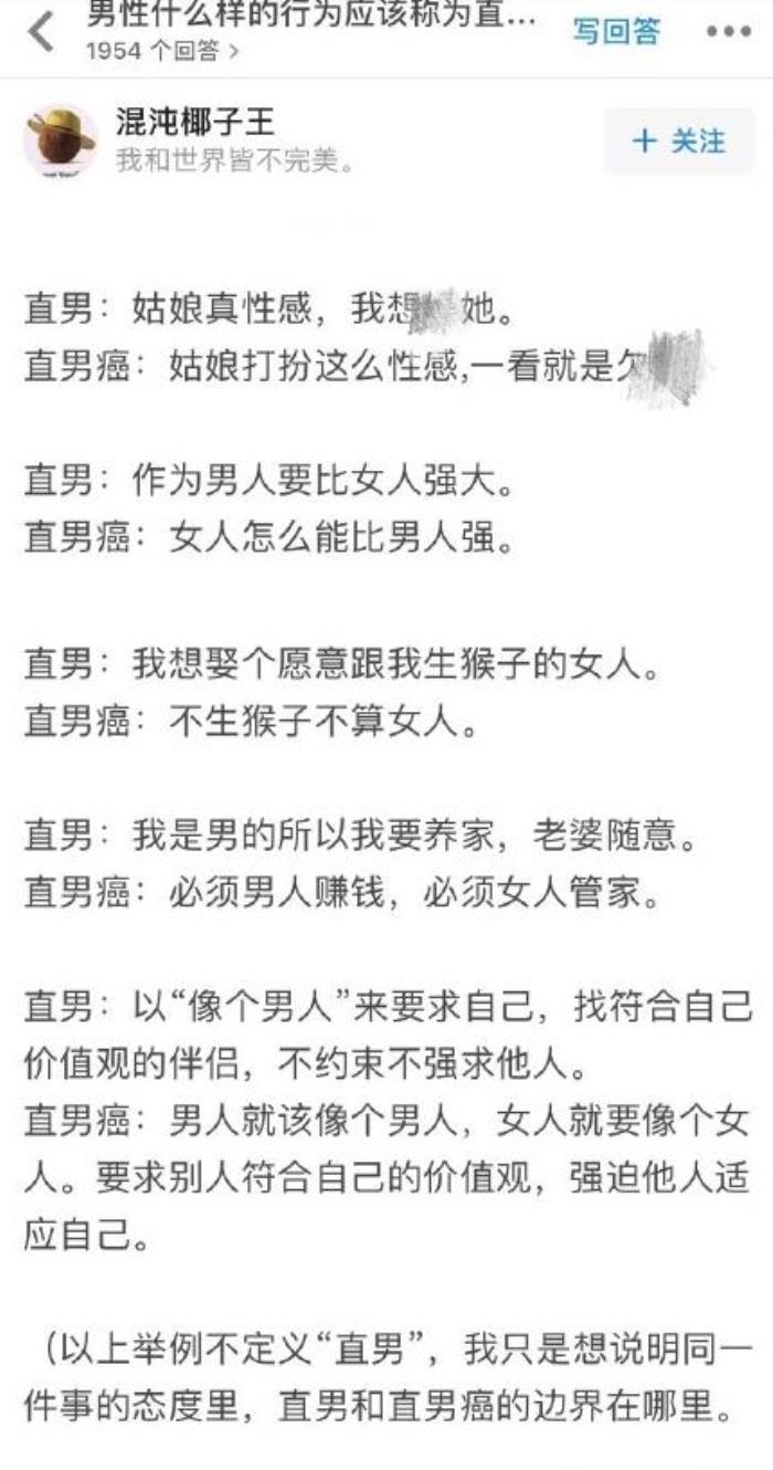 或许直男没有所谓的那么暖那么甜,但是他们努力工作,积极又向上,或许你不能理解他对你好的方式,但是他是真心对你的。直男癌就是严重自我,极端大男子主义,认为自己是男性就是天下第一,所有女性都要臣服与他。在他们眼里,女性只不过是暖床和传宗接代的工具罢了。