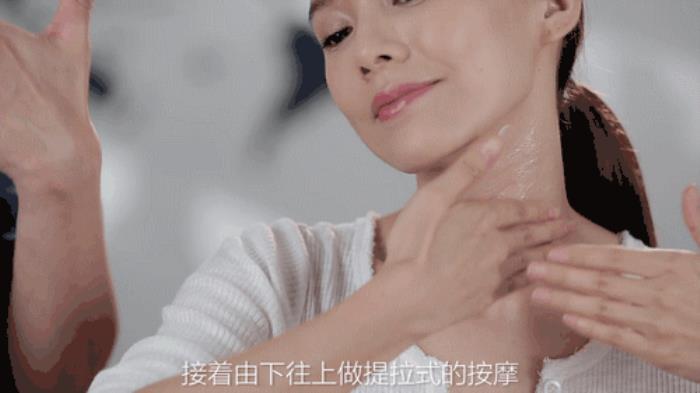 每天都支撑着头部重量的颈部,容易出现淋巴血液流通不顺畅的状况。抬高下巴,双手四指靠拢,在颈部由下向上多次按摩,侧面和后面可用单手轮流地按摩。无论在颈部进行什么护理,手法都要遵循由下向上,避免拉扯肌肤。
