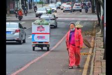 北京城内,有很多很多环卫工人,他们大多数是上了年纪的人。他们每一天费力的拿着巨大的扫帚扫地上的落叶。他们是北京的最底层的人,他们每一天辛苦挣得钱要寄回老家,他